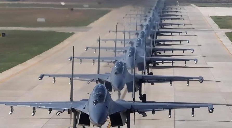 除歼-20外,由歼-16重型多用途战机与歼-10C中型先进战机组成的四代半主力机群,总规模逼近千架量级,轻重搭配、功能互补,可独立或联合执行防空拦截、纵深打击、电子压制等多样化任务。